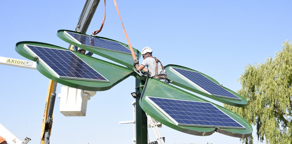 Consultado en cuanto a lo que son y qué es lo que se está previendo con estos Tréboles solares, Salvatori explicó: “Los tréboles solares, buscan que la gente tome conciencia de lo que son las energías renovables, la eficiencia energética y el uso racional de la energía. Porque podemos hacer grandes proyectos en la provincia como la construcción del primer Parque eólico de la provincia, un parque solar, pero la gente no lo termina de visualizar hasta que no lo ve tangiblemente. Estos tréboles, tienen esa estructura tan particular porque están pensados para que lo construyen chicos en escuelas técnicas. Buscamos, que los chicos de las escuelas técnicas tengan una nueva salida laboral, que no todo sea oil & gas en su cabeza; y que sepan de nuevas tecnologías y nuevas posibilidades de trabajo. Se construyen con materiales metálicos para que den una soldadura, la parte eléctrica y las energías renovables. Y finalmente, con estos tréboles poder alimentar de energía eléctrica, en puntos aislados, que no haya que hacer un interconexión eléctrica prolongada, larga, costosa; sino que puedan colocar en dos días, montar los Tréboles estos que generen energía y con eso podamos abastecer los diversos usos que tenemos en el lugar. Por ejemplo, en el Paseo de la Costa están pensados para alimentar los elementos de micro movilidad (monopatines y bicicletas eléctricas) dan iluminación en el sector, wifi y conexión para los celulares con tomas USB. Pero se pueden utilizar para pantalla publicitaria, se puede utilizar para iluminación; para diversos usos. La idea es que la gente cuando pasa por ahí, y en particular los chicos de la escuela técnica, sientan identidad propia con el espacio público y así empezar a generar conciencia con las energías renovables y con el cuidado del espacio público”