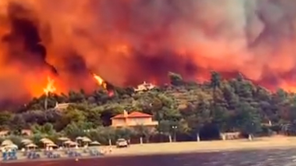 El fuego avanza imparable sobre las viviendas en la isla griega de Eubea