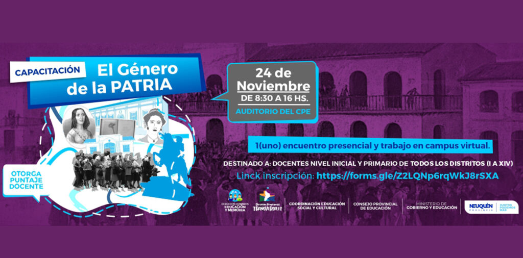 El ministerio de Gobierno y Educación y el Consejo Provincial de Educación (CPE) invitan a docentes y equipos directivos de Nivel Inicial y Primario de los Distritos I, VIII, VI y X a participar de la capacitación “El Género de la Patria”.