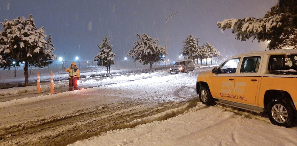A raíz de un nuevo período de lluvias y nieve que se registra en la provincia, los equipos dependientes de la secretaría de Seguridad continúan realizando tareas de acompañamiento a automovilistas, y controles viales sobre las distintas rutas y caminos.